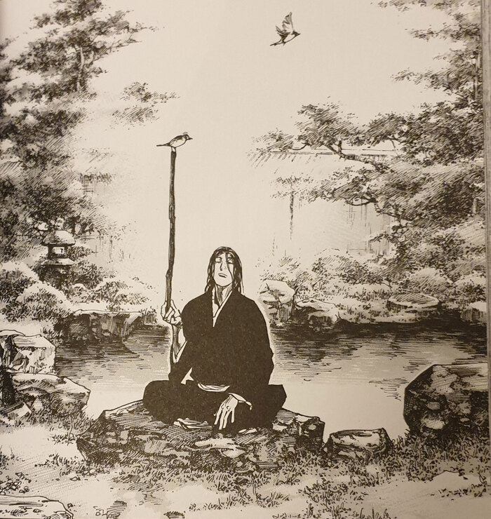 At the same time this volume had me awed by the sheer art again. The panels where different techniques with brush and pen were deliberately varied across or even used within the same panel. The sheer spiritual journey of Musashi combined with the raw reality of battle and earthly things like love and the sword itself. They are wonders and beautiful to read.