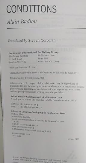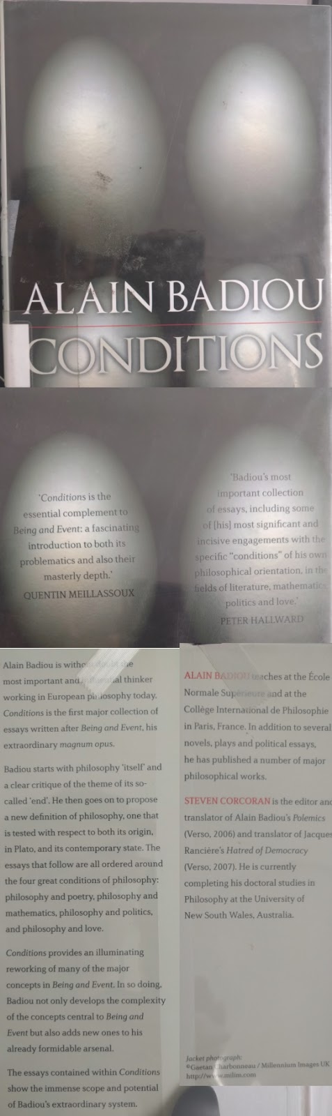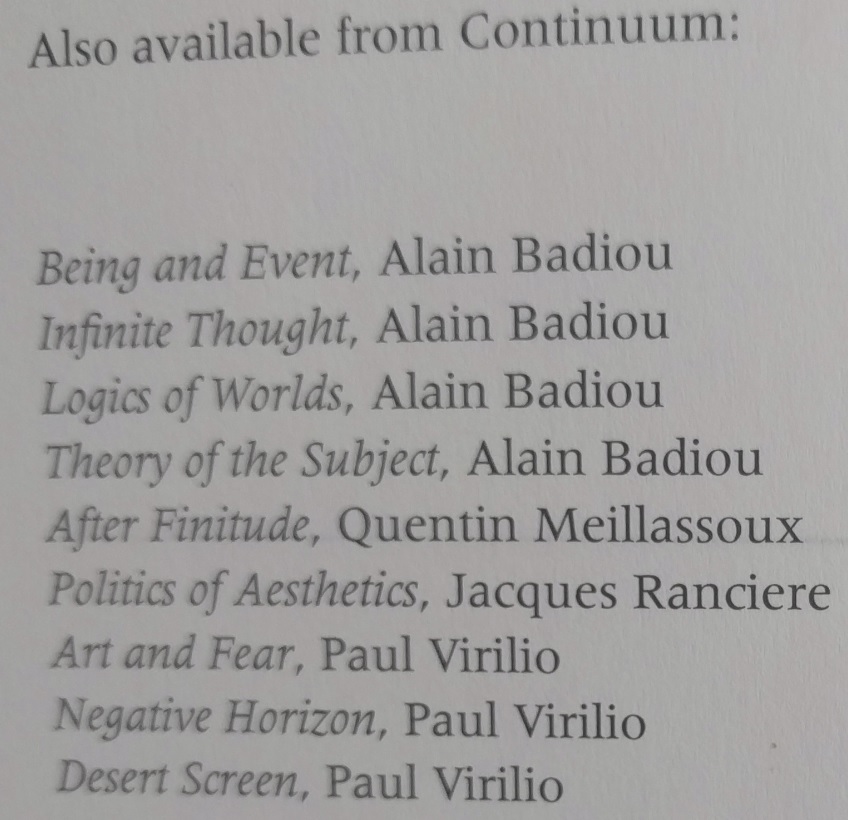 Great collection of Badiou’s post-B&E takeover. Found it helpful to refine and focus on some specific concepts from Being and Event as they were framed in different ways and discussed with different referents in mind.