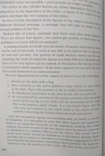 Several of these essays are otherwise available (notably in the "Theoretical Writings" collection, also published by Continuum). Nonetheless, the final essay on Beckett makes the whole book worth buying or stealing.
