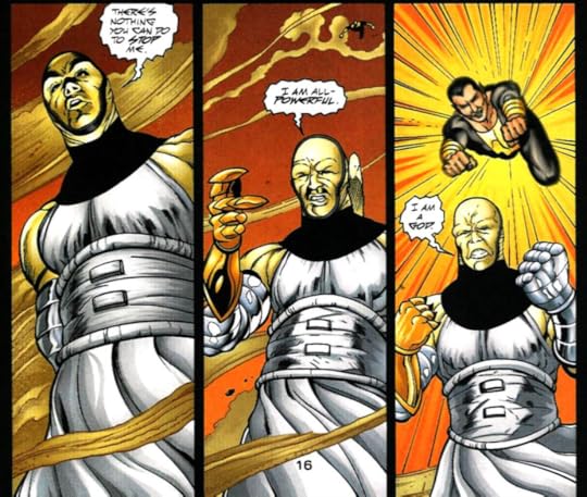 The Goyer/Johns JSA is a bunch of interesting ideas that are just executed really boringly. Frankly, I gotta put the blame on Goyer. The ideas themselves feel like Johns - stuff that bridges superheroing, emotional resonance, and continuity in ways that aren't quite as impressive as they think they are, but still lead to interesting places. But the scripting feels very flat, melodrama that gestures vaguely at that emotional resonance but doesn't really engage with it.