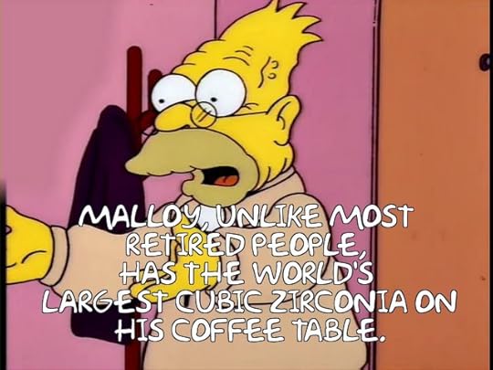 Marginally interesting also seems to rip off a Simpsons episode much like the previous book. This time like the episode with grandpa trying to find a cat burglar. It begins when a house in Kristy's neighbourhood is broken into. Kristy happens to be nearby as us Cary Reitin and the famous Sergeant Johnson who's helped the girls solve cases only this time he's seemingly being set up as the culprit or is he being set up? That aspect makes the story somewhat more interesting but it's just as ridiculous as all the other mysteries have been. The b plot involves Charlotte and the other kids becoming spies like Harriet and it ends up just like the actual book does. I'm just glad I somehow managed to get through the mysteries.
