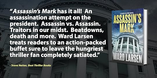 Book Review – Assassin’s Mark – Ward Larsen Author Ward Larsen's nineth David Slaton book is probably the best in the action-adventure series! Former Israeli Mossad assassin, now CIA operative David Slaton appears again in “Assassin's Mark,” a hard-hitting, action-laden thriller full of drama, suspense, and intrigue. Slaton gets the call to find who ordered and implemented an assassination attempt on the POTUS. Marine One survives a high-tech drone attack and the president is clinging to life after the attack. The vice president invokes the 25th Amendment – becoming President – and sends Slaton to the Far East to eliminate those involved in the assassination attack. During his search for those responsible for the assassination occurrence, Slaton confirms that there is a high-level traitor in the U.S. government and is eventually targeted himself by a clever and ruthless assassin who is just as lethal as he is. The action is non-stop, Larsen’s aviation theatrics are amazing, and the storyline and characters are profoundly deep. This is a lively, rollercoaster ride conspiracy thriller. Larsen skillfully and creatively continues to keep the Slaton series fresh, relevant, and rousing. I thoroughly enjoyed this book, it’s definitely my favorite in the series!
