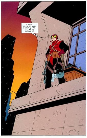 This graphic novel looks like it was written with me in mind. First we have a classic noir storyline. Mix in a city dripping with Art Deco stylings (from buildings to decor to fashion) with a hint of retro science fiction tropes (robots, video phones and of course flying cars and moto gyros). Oh and not to mention the gratuitous Abbot and Costelloesque jokes and the Fawlty Towers references (which were not lost on me). This book left me wanting more. This book left me wanting more (And I will say nothing more on this story as I'm sure my gushing will lead to spoilers and I do not want to ruin it for you). I do have to say that Michael Larks artwork in this book is beautiful, as opposed to his work on Daredevil and even Batman:Nine Lives (which is written my the same Author-Dean Motter) it is a cleaner line giving the book an almost animation style to it (complete with reference to Bruce and Timm). This change in art style (or that his later work was an evolution of this style) shows a city both ahead of its time, timeless and decaying all at once. A special note goes out to ifanboy.com, in particular to Mike Romo who's excellent article on comic tales of the city made me want to read this book http://www.ifanboy.com/content/articl... This will be a book that I will re-read, more than likely on a rainy night when I'm sitting at home with a dirty martini listening to Johnny Coltrane.