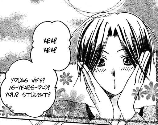 The book does later attempt to have Fumino's paternal uncle become their guardian and she refuses and goes to be with Kazuma but like... her uncle should have gone to the courts and been like: "Okay, I want proof of my niece's marriage and I want to contest it because, as a 16 year old, she needed the consent of a guardian, which I doubt was granted to her." and there would've been a whole thing about it, but because this story didn't really examine things outside of "wouldn't it be fun if a teacher and student married and had to keep it secret?" none of the legality of this situation is really ever addressed outside of it being a minor conflict for them as needed.