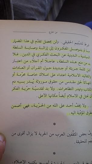 الأكثر صدقاً بين كل الكتابات العربية: يكرر: " الحرية فضاحة لمن ليس (أكثر) منها"_ ص: 167