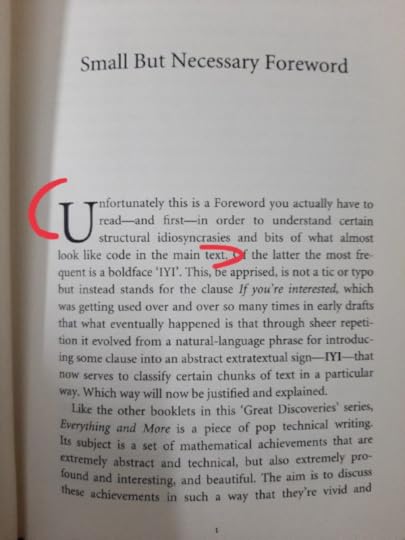 So far so good. Except..... The Foreword never ends! Keeps on going for pages, tending to infinity!! It was still fine, with dissection of one random mathematical fact after the other, all related to infinity.