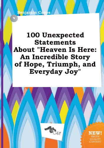 In this book, we have hand-picked the most sophisticated, unanticipated, absorbing (if not at times crackpot!), original and musing book reviews of "Heaven Is An Incredible Story of Hope, Triumph, and Everyday Joy". Don't say we didn't warn these reviews are known to shock with their unconventionality or intimacy. Some may be startled by their biting sincerity; others may be spellbound by their unbridled flights of fantasy. Don't buy this book 1. You don't have nerves of steel. 2. You expect to get pregnant in the next five minutes. 3. You've heard it all.
