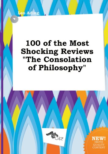 In this book, we have hand-picked the most sophisticated, unanticipated, absorbing (if not at times crackpot!), original and musing book reviews of "The Consolation of Philosophy". Don't say we didn't warn these reviews are known to shock with their unconventionality or intimacy. Some may be startled by their biting sincerity; others may be spellbound by their unbridled flights of fantasy. Don't buy this book 1. You don't have nerves of steel. 2. You expect to get pregnant in the next five minutes. 3. You've heard it all.