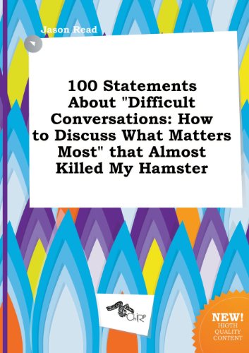 In this book, we have hand-picked the most sophisticated, unanticipated, absorbing (if not at times crackpot!), original and musing book reviews of "Difficult How to Discuss What Matters Most". Don't say we didn't warn these reviews are known to shock with their unconventionality or intimacy. Some may be startled by their biting sincerity; others may be spellbound by their unbridled flights of fantasy. Don't buy this book 1. You don't have nerves of steel. 2. You expect to get pregnant in the next five minutes. 3. You've heard it all.