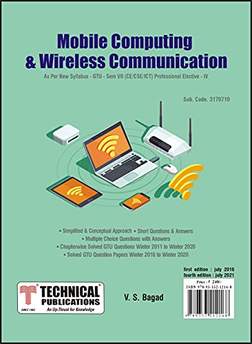 1. Introduction, Transmission Fundamentals - Signals for Conveying Information, Analog and Digital Data Transmission, Channel Capacity, TransmissionMedia, Multiplexing Communication Networks - LANs, MANs, and WANs, Switching Techniques, Circuit Switching, Packet Switching, Protocols and the TCP/IPSuite- The Need for a Protocol Architecture,TheTCP/IP Protocol Architecture,The OSI Model,Internetworking2. Cellular Wireless Networks - Principles of Cellular Networks,First-Generation Analog Second-Generation TDMA Second-Generation CDMA,Third-Generation Systems Antennas and Propagation - Antennas, Propagation Modes, Line-of-Sight Transmission, Fading in the Mobile Environment Modulation Techniques - Signal Encoding Criteria, Digital Data- Analog Signals, Analog Data-Analog Signals, Analog Data-Digital Signals Spread Spectrum - The Concept of Spread Spectrum,Frequency Hopping Spread Spectrum,Direct Sequence Spread Spectrum,Code Division Multiple Access, Coding and Error Control - Error Detection, Block Error Correction Codes , Convolutional Codes, Automatic Repeat Request3. Multiple Access in Wireless System - Multiple access scheme, frequency division multiple access, Time division multiple access, code division multiple access, space division multiple access, packet radio access, multiple access with collision avoidance. Global system for mobile communication - Global system for mobile communication, GSM architecture, GSM entities, call routing in GSM,PLMN interface, GSM addresses and identifiers, network aspects in GSM,GSM frequency allocation, authentication and security General Packet Radio Service(GPRS) - GPRS and packet data network, GPRS network architecture, GPRS network operation, data services in GPRS, Applications of GPRS, Billing and charging in GPRS.Wireless System Operations and standards - Cordless Systems, Wireless Local Loop, WiMAX and IEEE 802.16 Broadband Wireless Access Standards Mobile IP and Wireless Application Protocol4. Wi-Fi and the IEEE 802.11 Wireless LAN Standard - IEEE 802 architecture, IEEE 802.11 architecture and services, IEEE 802.11 Medium access control, IEEE 802.11 physical layer, Wi-Fi protected access.5. Bluetooth - Radio specification, baseband specification, link manager specification, logical link control and adaption protocol.6. Android APIs, Android Architecture, Application Framework, The Application components, The manifest file, downloading and installing Android, Exploring the Development Environment, Developing and Executing the first Android application, Working with Activities, The LinearLayout Layout, The RelativeLayout Layout, The ScrollView Layout, The TableLayout Layout, The FrameLayout Layout, Using the TextView, EditText View, Button View, RadioButton, CheckBox, ImageButton, RatingBar, The options Menu, The Context Menu.