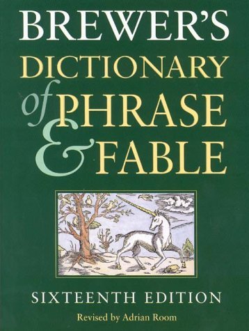 While relaxing and reading my evening repertoire of the 1 million best books, I periodically, crossed a person a place or phrase that somehow missed my reading repertoire. When this happens, I reach for my copy of "Brewer's Dictionary of Phrase and Fable."