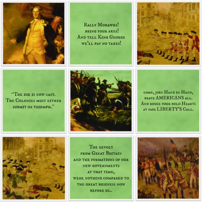 "We have an old mother that peevish is grown, She snubs us like children that scarce walk alone; She forgets we're grown-up and have sense of our own." “The die is now cast. The Colonies must either submit or triumph.”