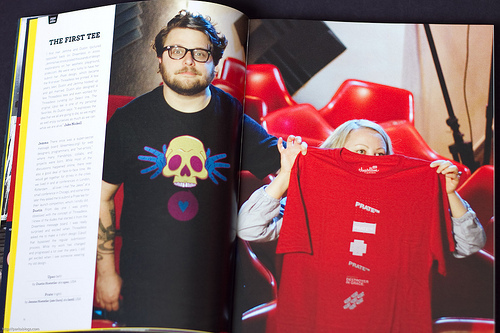 One of the best parts about this book, is that it doesn't just tell the story of how 'Threadless' got started, or of it's creators and artists... it doesn't just show the designs as they have changed over the years... it tells all of that and FAR more- it gives you a picture of not just what, but most importantly of all, WHO the people are, from fans to artists to owners, of the Threadless company.
