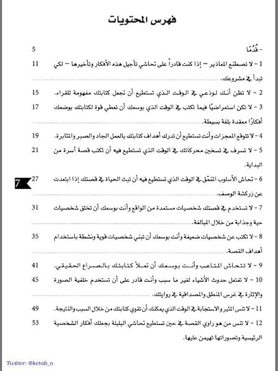 بسم الله لم أصادف ترجمة سهلة كهذا الكتاب ممتع يحتاج لجلوس وقلم وكراس وتلخيص يسرد عبر فصول الاخطاء القصصية التي يمكن أن تعترض الكاتب وفعلا وجدت نفسي مخالفة لما يمكن أن يكون والحمد لله رب العالمين