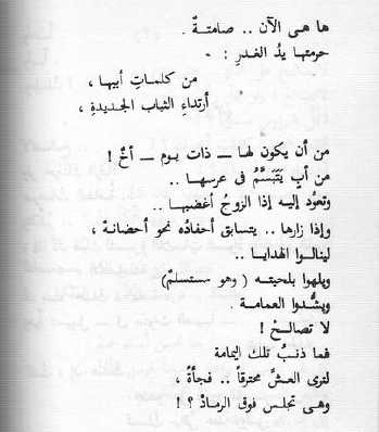 فالدم -الآن- صار وسامًا وشارة لا تصالح. ولو توَّجوك بتاج الإمارة إن عرشَك: سيفٌ وسيفك: زيفٌ إذا لم تزنْ -بذؤابته- لحظاتِ الشرف واستطبت- الترف