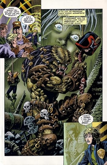 Read this one overnight, as I was at work. This was a pretty good read. The writing was good and I liked the art a lot. It kind of reminds me of a younger Tim Truman. The story takes place outside of MegaCity One and then of course the Predator moves into the city to wreak havoc. He decides to start killing Judges and claiming their skulls as trophies, as Predators are wont to do. Dredd runs afoul of the creature and a terrible battle takes place. This one was great fun, but i have to admit I wanted it to be longer, wanted more. I would like to search for others in this vein and hope that they are out there. I would recommend this one to both Dredd and Predator fans. Fun times indeed!!! Very quick read, but worth it!