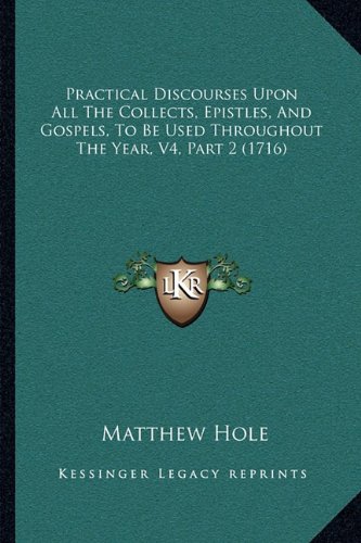 Practical Discourses Upon All The Collects, Epistles, And Gospels, To Be Used Throughout The Year, V4, Part 2 (1716) is a book written by Matthew Hole. The book is a collection of practical discourses that are intended to be used in connection with the collects, epistles, and gospels that are used throughout the year. The book is divided into four parts, and this particular volume is the second part of the fourth volume. The book was originally published in 1716 and has since become a valuable resource for those interested in understanding the meaning and significance of the liturgical texts used in the Anglican Church. The discourses are written in a clear and concise style, making them accessible to readers of all levels of knowledge and experience. The book is a valuable resource for clergy, scholars, and laypeople who are interested in deepening their understanding of the liturgy and its significance in the Christian faith.Beginning With Ascension Day, And Ending With The Last Sunday After Trinity.This scarce antiquarian book is a facsimile reprint of the old original and may contain some imperfections such as library marks and notations. Because we believe this work is culturally important, we have made it available as part of our commitment for protecting, preserving, and promoting the world's literature in affordable, high quality, modern editions, that are true to their original work.