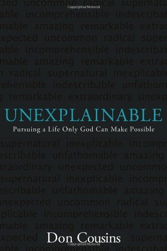 From trusted author Don Cousins comes Unexplainable , a dynamic book designed to help people find true fulfillment by shifting their life view from outside-in to inside-out. Most of us live our lives from the “outside-in.” This means we try to order our external circumstances (family, finances, career, friends, leisure, etc.) in such a way that we feel happy, secure, and content within. But this approach simply doesn’t work. Few of us are ever able to get our life circumstances just as we want, and even when we feel we do, it doesn’t last. More importantly, the Bible makes it clear that God intended life to be experienced “inside-out.” Unexplainable will inspire you to pursue a life for which there’s no logical explanation apart from God.
