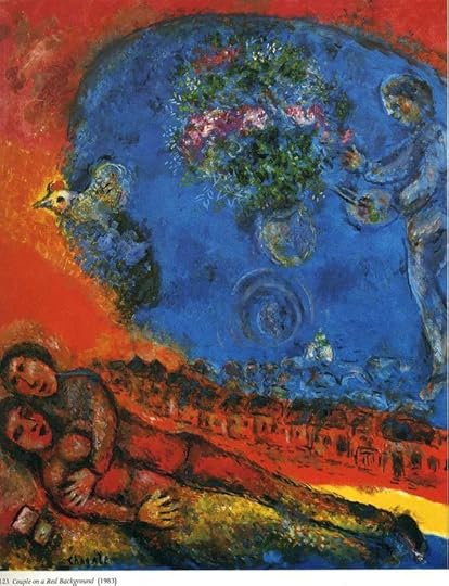 Couple on a Red Background, 1983, a late painting with color grown autonomous (pp. 76, 80) Image source for this review: https://www.wikiart.org/en/marc-chaga...