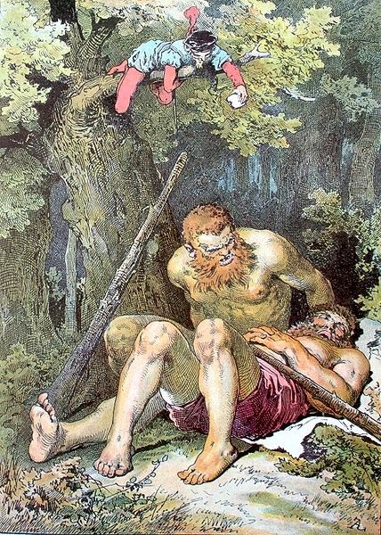 A tailor outwits giants with his needle, his thread, and his head. When the giants, for example, hear that the tailor has killed 7 flies with one blow, they think he's referring to men when it was really just flies.