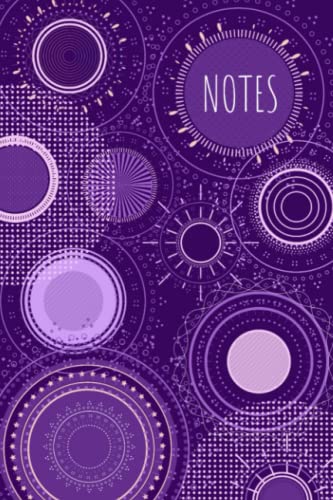 ABOUT THIS NOTEBOOK - 100 pages of lined paper are enclosed within a purple paperback cover with intricate circular patterned motifs. This notebook is perfect for note-taking, journaling, diary recordings, handwriting practice. Suitable for people of all ages and easy to carry as can fit into average sized backpack.