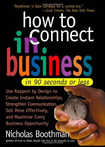 Whether interviewing, selling, networking, or leading a team, brainstorming with the boss or delivering a presentation, success in business depends on connecting with other people. Nicholas Boothman, the best-selling author who consults with Fortune 500 companies, now brings his system of forging instant relationships to the world of business. Beginning with the simplest of tools (face, body, attitude, and voice) he shows how to make a dazzling first impression. And then, for when those first 90 seconds are up, how to master the people-to-people skills that are essential to self-confident, effective, ongoing communication.
