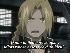 This brings me to the second incredible thing that distinguishes FMA from anything else I have read: the depth in the story. We aren't just in for action (though we've got a lot of that), romance (though there's certainly the "aww" moments), humor (though I always crack up), or plot twists (though Arakawa is ingenious in plot progression). We get a whole set of deep questions. The characters aren't just alchemists - they ask WHY they do it, if it's worth doing it, when it's worth doing it, what they should do with it. WMorals come up everywhere - when is it okay to kill people, if ever? How should we deal with sacrifice? How do we treat human souls? When does someone stop becoming human? We're bashed with questions over sacrifice, genocide, utilitarianism versus deontology... You don't just have an adventure when you read FMA, you have a real experience that leads you away changed and... in my case... absolutely obsessed.