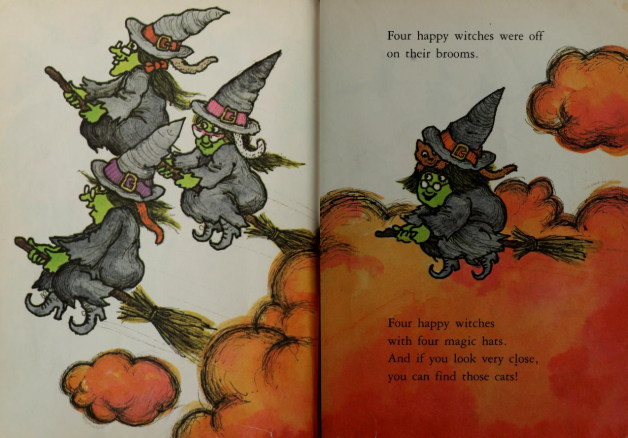 This book, like a few others I have read, haven't really had a central theme or message. One that could very loosely be taken away is the idea of friendship because these four witches do everything together and are very close, as do the cats appear that take their hats. I also noticed that the author decided to write this book with a rhyme pattern which is very common throughout children's books. I think that was a good choice for this story and I also think the illustrations make it very special.