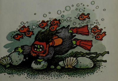 I enjoyed Witches Four, which reminded me - both with its paper-over-board binding format, and with its illustrations - of some of the Weekly Reader books we used to get, when I was a little girl. It's odd, because although the style definitely had that late 1970s/early 1980s sensibility, something I generally don't care for (see my review of The Old Witch and the Ghost Parade), it worked here. I wouldn't say this was anywhere near the strongest title I've seen, in my ongoing "witchy-witch" project, but it has definite appeal, and would make an excellent read-aloud. Recommended to all Marc Brown fans, and to those looking for gentler Halloween fare for younger children.