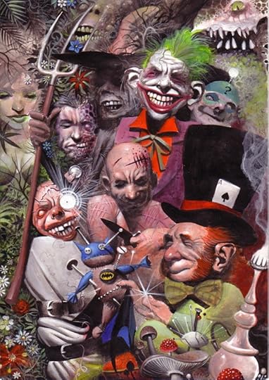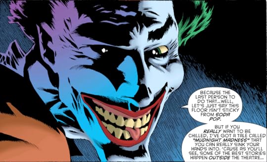 The Joker tells tales about Arkham Asylum inmates Mad-Hatter (Jervis Tetch), Harley Quinn, Riddler Killer Croc, and Clayface (Basil Carlo). He may be an unreliable narrator, but the stories themselves are still fun to read. With the exception of Clayface's story, they are tales linked to obsessions viewed by the characters as romantic love.