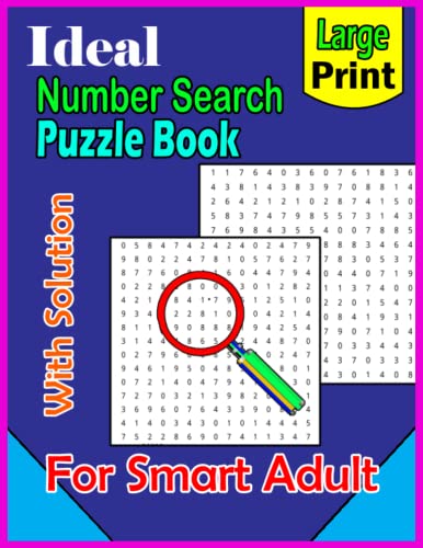 Ideal Large Print Number Search Puzzle Book For Smart Adult: Beautiful Number Search Relaxing Book For Adult And Seniors.(8.5 x 11) inch , App Pages Colorful Design.