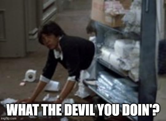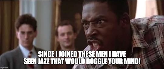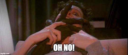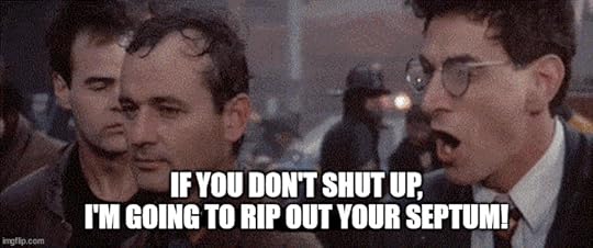 This theater is one that shows bad sci-fi or pornos, depending on the day, and that brings up another point. While Mueller refuses to be crude with his language, he has no problem getting crude with some of his content. I can't find his age, but based on some stuff I saw on linkedin, I'm guessing he was in his late 30s when he wrote this, but it reads more like it was written by a 16-year-old boy. Basically, he's a bit of a pervy horndog. Venkman considers rubbing his foot along a female students' leg at the beginning while she's doing that ESP test. You know, foreplay for what he really has in mind. Some of Egon's equipment look like sex toys. And how about what everyone is thinking the first time we see Dana? Several people notice her, comment on her physical attributes, and one "old duffer out walking his schnauzer gazed at Dana and remembered how long it had been since it had been long." This kind of stuff is all over the book, but no profanity, so it's not like he was trying to stay out of PG-13 territory. Again, I confess myself confused.