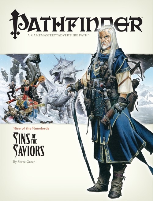 - "Sins of the Saviors," an adventure for 12th-level characters, by Stephen S. Greer. - Insights into the magic of Thassilon and the arcane secrets of the runelords, by Brian Cortijo, Nicolas Logue, Owen K. C. Stephens, et al. - A glimpse into the profane cult of Lamashtu, the goddess of madness, monsters, and nightmares, by Sean K Reynolds. - The fifth installment of the Pathfinder's Journal, by Mike McArtor and James L. Sutter. - Six new monsters, by Joshua J. Frost, Stephen S. Greer, Mike McArtor, and F. Wesley Schneider.