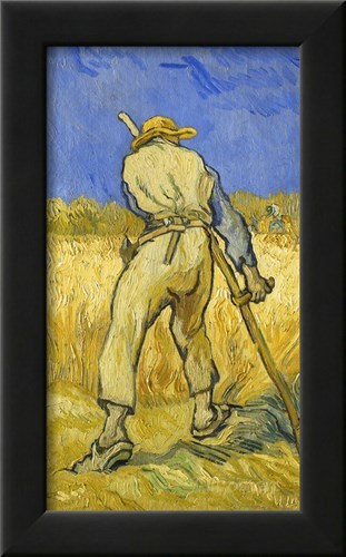 "منذ أيام وأنا أعاني من تفاقم المرض غير أنني أصارع مع المرض قماشة لوحتي في صورة ((الحاصد)) التي غمرتها كلها بطلاء أصفر كثيف ورغم بساطة المشهد إلا أننني أرى ذلك الحاصد تحت وهج حرارة الشمس كأن�� شبحا غامضا يقاتل كالشيطان لإنجاز مهمته .. فبدى لي صورة للموت .. وبدت لي سيقان القمح التي يجمعها بمنجله كأنها بشرا .. ولا أعرف كيف خرج هذا الحاصد الشيطاني إلى الوجود لكنه أتى على النقيض ممن أردت رسمه من قبل .. ويثيرني أن صورة الموت هذه تمضي في خطواتها الواثقة دون أي مظهر من مظاهر الحزن .. ماضية في جرأة في وضح النهار تحت ضوء الشمس الذهبي الذي يغمر الأشياء جميعا"
