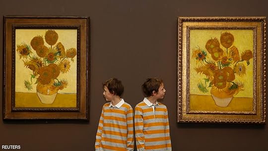سترى أن هاتين اللوحتين تشدان بصرك إليهما. انهما نوع من الرسوم التي تتغير صفاتها كلما ازددت إمعانا بها، فتصبح اكثر ثراء *قد رسم فان جوخ أكثر من لوحة لعباد الشمس، وهو مشهور بهم أيضاً ..