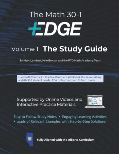 The Math 30-1 EDGE a comprehensive study guide designed for Alberta students taking mathematics 30-1. Part textbook with detailed notes and concept explanations, and part workbook with loads of practice questions and solutions. All study guide content contained within is supported with instructional videos, e-learning, and additional interactive exams. Full access is provided with purchase.