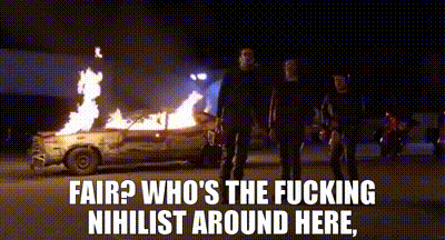 "Y recuerda esto también hijo. El mundo exterior está lleno de tipos malos, así que la única manera de sobrepasarles es siendo tú aún más malo que ellos. "