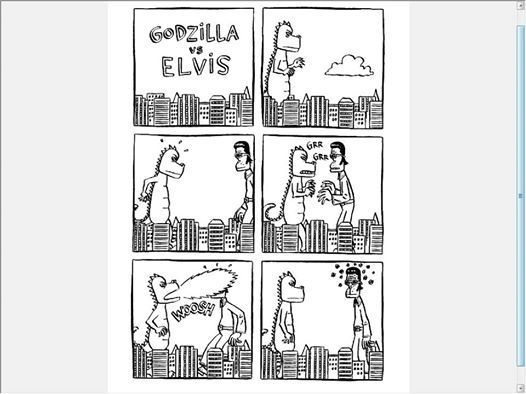 Este comic recopila varios materiales cortos de Jason, completamente humorísticos y sin el aspecto particularmente emotivo y a veces trágico de sus historias largas. Algunos son comics experimentales de varias páginas que toman un acercamiento casi surrealista, otras son varias tiras cómicas o lo equivalente a sketches, breves y graciosos. Mis favoritos, sin duda, son el chiste recurrente del cavernícola y el de cuando invitaron al Terminator y a Dracula a una fiesta de disfraces. “I’ll be Bach”. XD