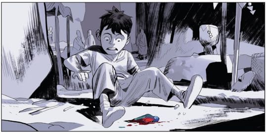 At times, the story jumps around so much that the action becomes confusing. (It is clearer on the 2nd reading.) It is high on action and less on character development. The artwork is the star here. The multiple shades of white, black, and gray used in Pale City and its inhabitants is downright oppressive. The splashes of bright colors brightens up everything and bring redemption. Evil men are just rotten to the core. Kroma has been told that she is a killer; she finds herself fulfilling this promise. Gallons of blood and seeing spears, swords, and scythes penetrating and killing and a beheaded man throw this into solid teen territory.