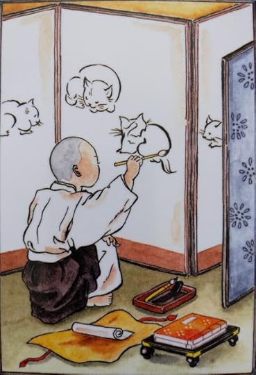 The author Lafcadio Hearn lived in Japan and collected (and translated) traditional Japanese folk tales. In this one, the youngest son was not a good farm worker, so was sent off to become a priest. But all he wanted to do was draw cats. That was his talent, and his passion.