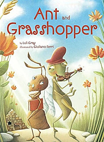 Luli Gray's Ant and Grasshopper is a refreshing retelling of an old lesson. Ant is an industrious and methodical accountant of his winter supply of food. He knows winter is long and bitter and is motivated to prepare himself for the future drought. In contrast, the grasshopper is capricious, fun-loving and uses his musical talents to entertain in the present. He makes no time to prepare for winter. Ant warns him, chastises his lack of forethought but to know avail.