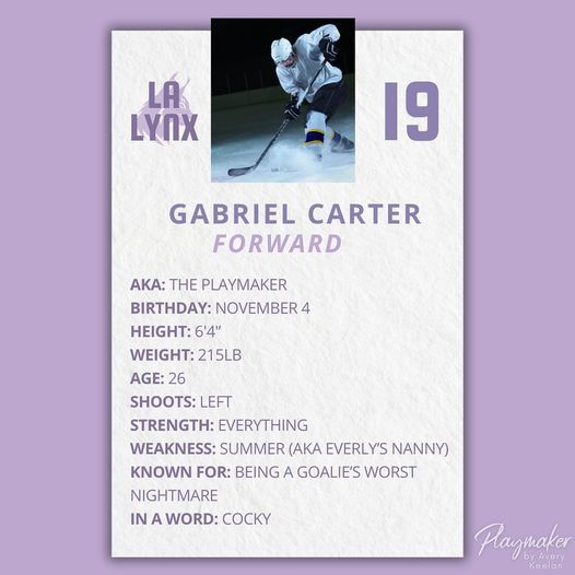 I know better than to fall for Gabriel Carter, notorious NHL playboy. Not only has he broken innumerable hearts during his 7 years in LA, he's my boss—even if he does have a smile that leaves me weak in the knees, a body built for sin, and enough charm to melt my sundress clean off.