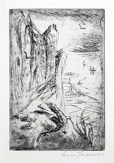 …day in, day out, we lived in great seclusion in our Rue-Herb Retreat. This hermitage stood on the edge of the Marble Cliffs, in the middle of one of those islands of rock one sees protruding from the vineyards here and there. The garden was cultivated in narrow beds won from the rock, and along the loose rock walls that edged these beds sprouted an abundance of the wild plants that flourish in fertile vineyard earth. And thus early in the spring blue pearl clusters of the grape hyacinth bloomed and in the fall we delighted in the winter cherries, their fruits gleaming like red lanterns. But in all seasons the house and garden were bordered by silvery green rue bushes, from which a muddled, swirling scent rose when the sun was high.