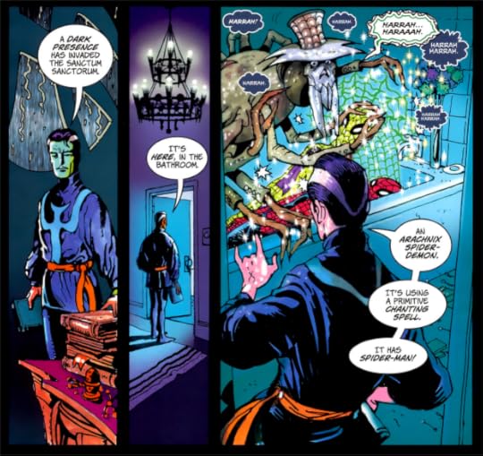This is an excellently trippy homage to Ditko's Dr. Strange. The story is a superb psychedelic excursion into weird alternate dimensions as Dr. Strange endeavors to rescue Spider-Man from spider-demons in the insect realm. The supporting characters are curious and cool, the writing witty and wonderful, the artwork vibrant and colorful. The reprinted Ditko-drawn Dr. Strange and Spider-Man story from 1965 is also extradimensionally excellent, filled with mystical mayhem. A fun read.