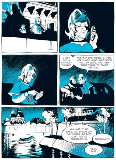 A fast-paced story with beautiful artwork, exclusively drawn in blue, black and white. We follow a man who suddenly has no privacy - everyone can see what he sees and hear what he hears as soon as they close their eyes or plug their ears. The premise was really interesting to me, a nice change from typical "body-swap" or time travel stories. But this is not science-fiction at all. The panels with views of Paris and its streets and parks are realistic, whilst staying away from the tourist clichés such as the Eiffel Tower or the Louvre. I really appreciated this as a French reader!