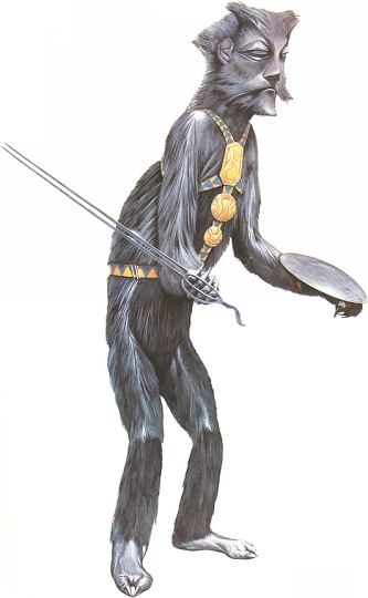 Barlowe had a bit of an odd job here. The description of the Ruml is vague in a lot of cases (the appearance of the face, hands, and feet), but specifies that they cannot stand completely erect, and that their limbs are more inwardly oriented than a human's. I think Barlowe did about as good of a job as I could imagine, but the drawing produced does have a rather stiff look to it. The very human look of the face is a good case of attention to detail, as Kator was able to disguise himself as human merely by shaving his face and wearing thick clothing. I (and the cover artist of this edition) imagined him looking significantly more catlike (the clipping of the whiskers is noted as being particularly disturbing to Kator), but I can't seriously fault Barlowe's choices here.["br"]>["br"]>["br"]>["br"]>["br"]>["br"]>["br"]>["br"]>
