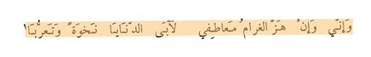 -لحى الله قلبي هكذا هو لم يزل ،، يحن ويصبو لا يفيق ولا يعي لئن كان للعشاق قلب مصرع ،، فما كان فيهم مصرع مثل مصرعي