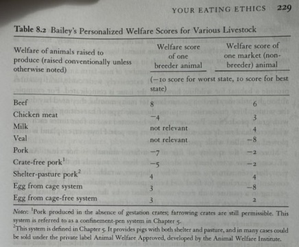 Although animal well-being can be enhanced in most typical animal production systems, we are quite certain that the overall level of animal welfare is higher in the broiler, dairy, and beef industries than the egg, pork, and veal industries. Beef cattle in particular experience high levels of well-being. A movement to improve the lives of egg-laying hens or sows would substantially reduce animal suffering, whereas an improvement in the beef industry would only make happy animals happier—both are praiseworthy, of course.[4]