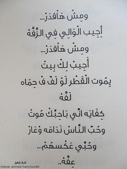 3 نجوم وثلاثة ارباع النجمة :D زى ما كل مرة اكتب ريفيو عن شعر اقول انا لا افقه شئ فى الشعر فنيا وادبيا انا بس باقيم باللى وص عقلى وقلبى الديوان جميل , عاميته سهلة ودارجة ورغم كده تحسها جديدة فى عفوية وبراءة وصدق التجربة الاولى السر فى الكلام العادى بس اللى بيلمس مكان جديد جواك فيه عدد من الصور والتشبيهات العبقرية وبيختم الديوان بجرعة عظيمة من الابداع والتفرد والجمال والجنان والصدق والمعنى فى "مرسال لحبيبتى"