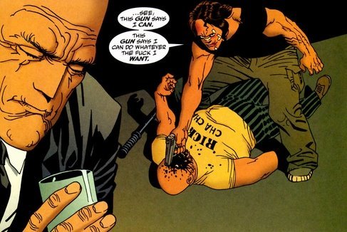 (Zero spoiler review for the omnibus collecting this arc) 4.75/5 I've literally just turned the final page on this outstanding tome a few minutes ago. It's still a little fresh, a little raw. I'm not quite sure I've fully come to terms with it all. Just how special it was. That its really over. You know, that upset, whimsical kind of nostalgia that gets you deep down in the feels. Like losing a dear friend. A reminder of what it feels like to be human... to be alive. First of all, it's a sincere honour to be the first person to put an actual review for this book on this site. An esteem I take very seriously indeed. It's not very often a book that starts out really god damn great, actually ends up getting better and better as it goes along. It's even rarer when that series weighs in at a whopping 100 issues. All written by the same writer. All drawn by the same artist. The same creative team across its entire run if I'm not quite mistaken. A feat that is all too rare in comics, yet 100 Bullets stands as testament to the power of a small team of creators on top form, working on a project they all care for and believe in. I really can't stress how brilliant it was to have Risso's art grace every single page of this book. You could name dozens of more technically gifted artists out there, but few, if any can match the man's imitable style. I can't recall another artist that has the man's visual style and storytelling flair. Seriously, this book is a feast for the eyes like no other. The layouts, the character designs, the exquisite colour work. All of it goes together to make one of the most complete and stunning visual aspects to a story in any medium I've experienced. Yeah, it's that good. Azarello too, is at the top of his game. The top of everyone's game. This is some of the most consistently outstanding comics writing you will ever see. 100 issues with barely a 'good story to be found amidst them all. Volume two was pure fire from start to finish. I have no idea where the second half of this book went today, but I just couldn't put it down. When I can reads hundreds of pages without coming up for air, you know you're onto a winner. This makes so many of his contemporaries look pretty dang average by comparison. I could quibble over little bits and pieces here or there, but I really don't want to even slightly tarnish this right now. Nothing's perfect, but this is just so damn special to me, imperfections be damned. God how I wish more of comics was like this. Long, amazingly strong runs, the same outstanding art team... DC Vertigo, how I mourn your loss. At its height, this label was the bees knees, the cats pyjamas. To see DC now and how far they have fallen from their hey day, its enough to make one sick. DC Vertigo was some of the best comics ever produced, and right now, 100 Bullets for me, stands at the very pinnacle of Vertigo titles. A more uncompromising, magnificent and mature comic there isn't. Or if there is, please tell me what it is, because I can't see what's going to knock 100 Bullets off it's well earned throne. Essential reading. 4.75/5